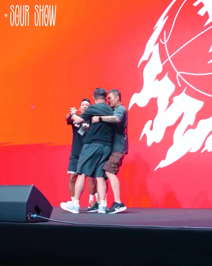 詹姆斯中国行花絮:狂热球迷冲上舞台被带走 詹姆斯无奈摇头微笑